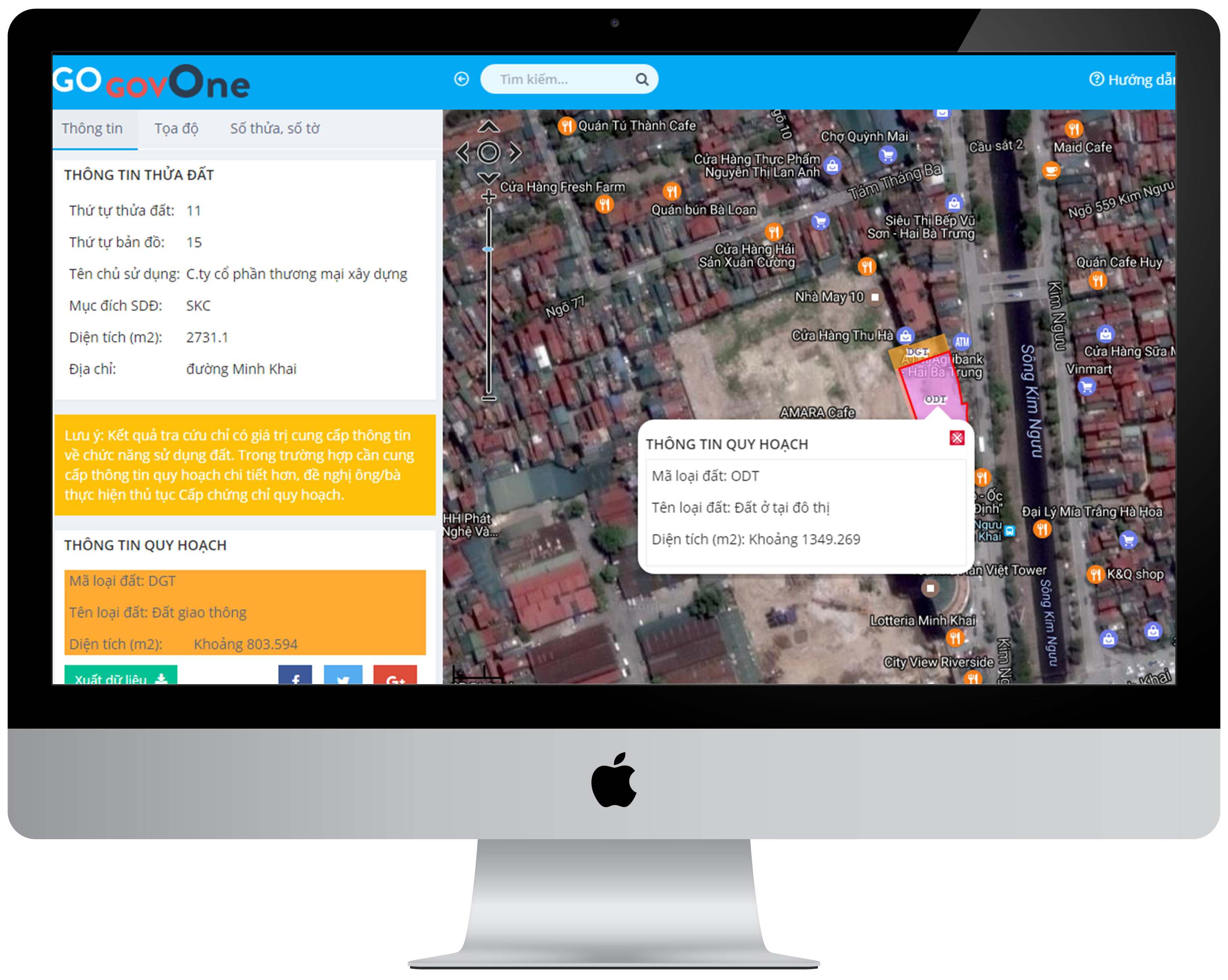 • Hệ thống công khai thông tin đất đai, quy hoạch phục vụ chính quyền điện tử và đô thị thông minh – GovOne