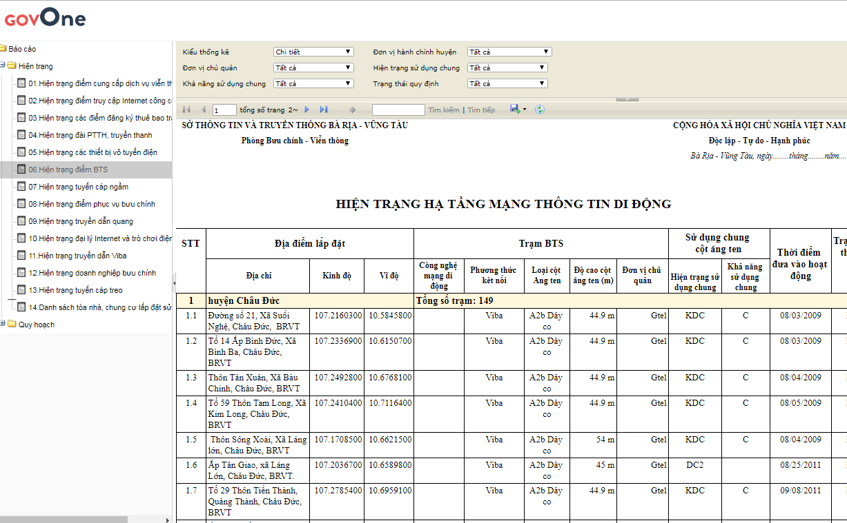 • Hệ thống công khai thông tin đất đai, quy hoạch phục vụ chính quyền điện tử và đô thị thông minh – GovOne